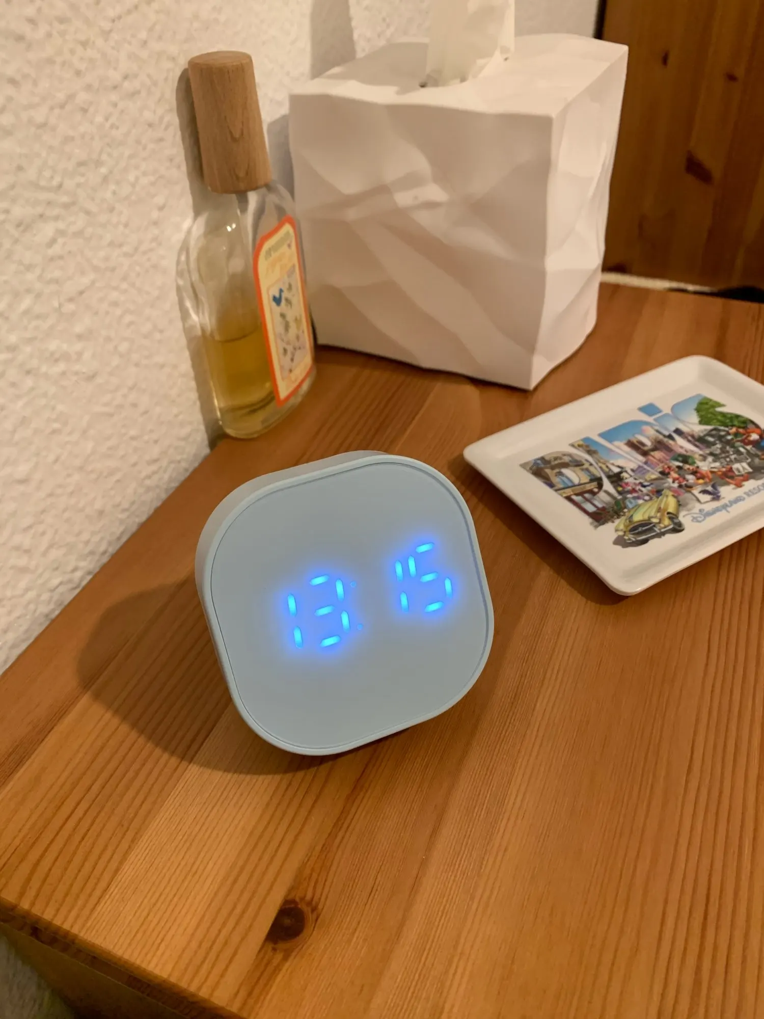 El producto muy bonito y de buen tamaño. Las alarmas se configuran y suenan bien. Pero lo malo es que al desenchufar el reloj se te borran todas las configuraciones que le hayas hecho. A parte de eso todo bien.