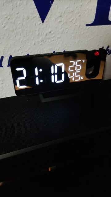 -[Radio FM i funkcja timera] odbioru sygnału zasięg tego FM alarm z projekcją jest 87.5 do 108.0MHz, i antena z tyłu urządzenia może być rozszerzona dla lepszego odbioru. Możesz zaoszczędzić nawet do 15 miejsc dla szybka i prosta. Funkcja timera pozwala na automatyczne wyłączanie po przejściu do snu.