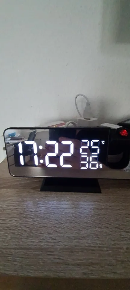 Projekcja cyfrowa budzik USB Radio FM Dimmer Timer podświetlenie projektor LED obudź zegar z temperatury termometr
