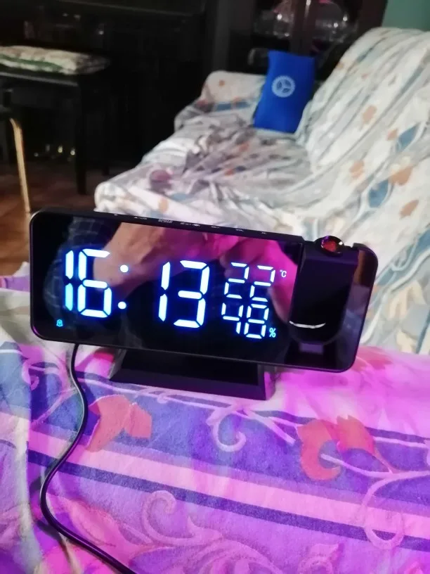 Cyfrowy budzik LED zegar elektroniczny stół do komputera zegary USB Wake Up FM Radio czas projektor dwie funkcja drzemki alarmu
