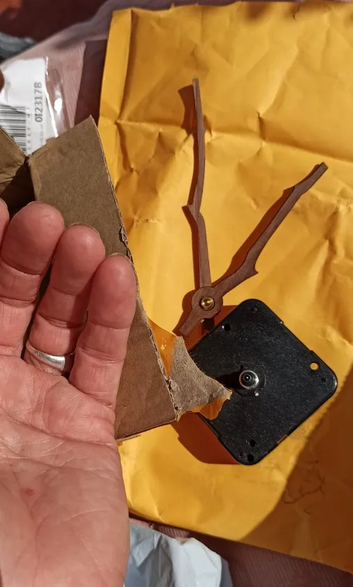 wskazówki wraz z mechanizmem przyszły szybko o ile wskazówki są bardzo ładne to sam mechanizm sprawia wrażenie dość słabej jakości plastik bardzo cienki i delikatny ( szkoda że nie dorzucili instrukcji jak prawidłowo złożyć wszystko w całość )