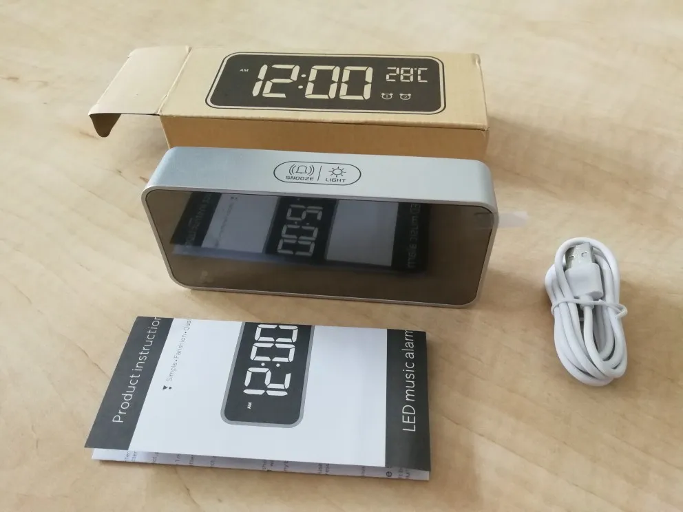 Budzik z muzyką LED zegar cyfrowy 2 alarmy sterowanie głosem drzemka wyświetlacz temperatury budzik cyfrowy z kablem USB