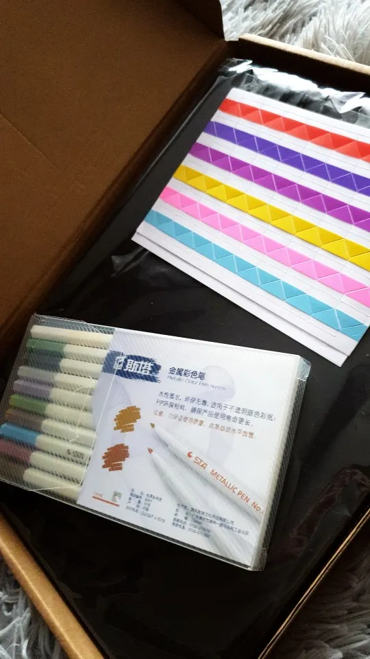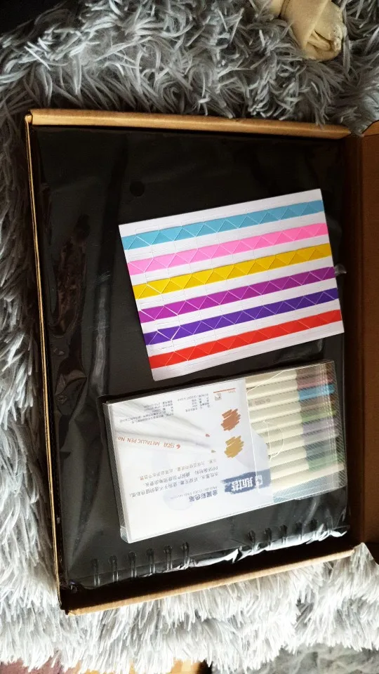 1 * album ze zdjęciami DIY, 1 zestaw kolorowe długopisy, 2 * naklejki narożne.