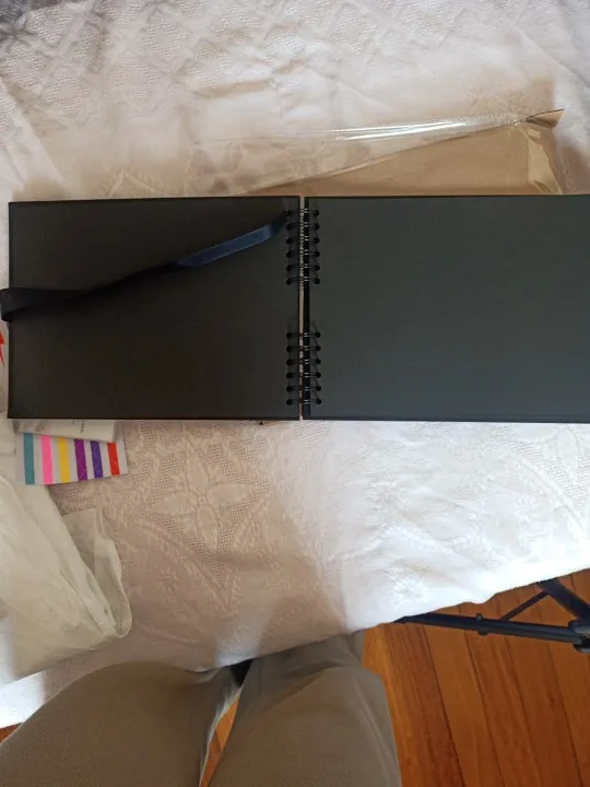 Альбом отличный! Есть небольшие следы клея, но не критично! Заполнять его одно удовольствие) маркёры для подписей идут в комплекте, пишут отлично! Заказывайте дополнительно уголки для фото, их точно не хватит. Доставка в пятёрочку ( пункт выдачи) менее двух недель. Рекомендую к заказу!