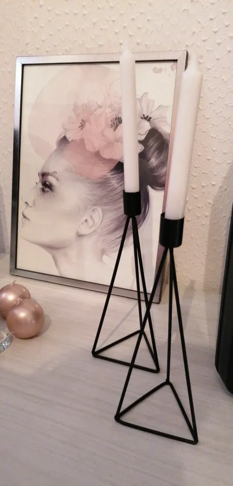 Metalowy trójkąt geometryczny świecznik, niepowtarzalny wygląd tworzy romantyczną i elegancką atmosferę.