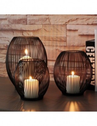 Bardzo dobry czarny Metal Hollow jak klatka dla ptaków lampion świecznik bez diody LED światła romantyczny domowy Hotel ozdoby d