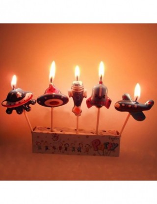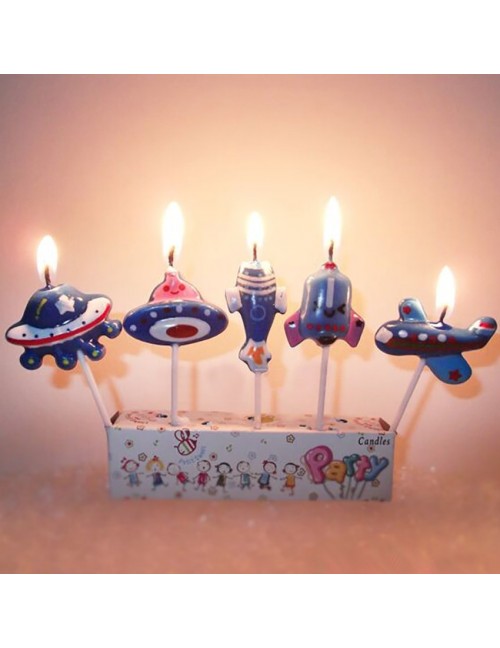 5 sztuk/zestaw samolot świeca Cartoon samolot statek kosmiczny rakieta świeczki na tort urodzinowy zestaw Cupcake świeczka dekoracyjna dla dzieci Party