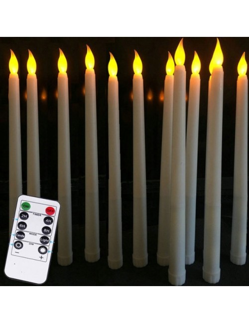 Opakowanie 12 żółtych migotania zdalne świece LED, plastikowe bezpłomieniowe zdalne świece stożkowe, bougie led do dekoracji kolacji