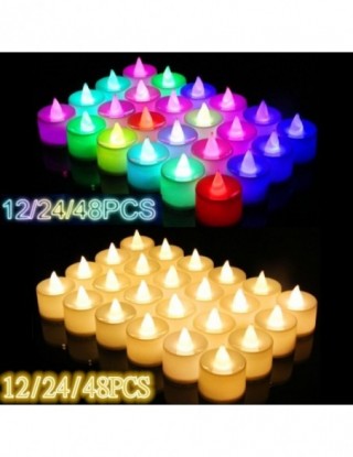 12/24/48 sztuk bezpłomieniowe Tealight LED świece do herbaty oświetlenie ślubne romantyczne świece światła na urodziny dekoracja