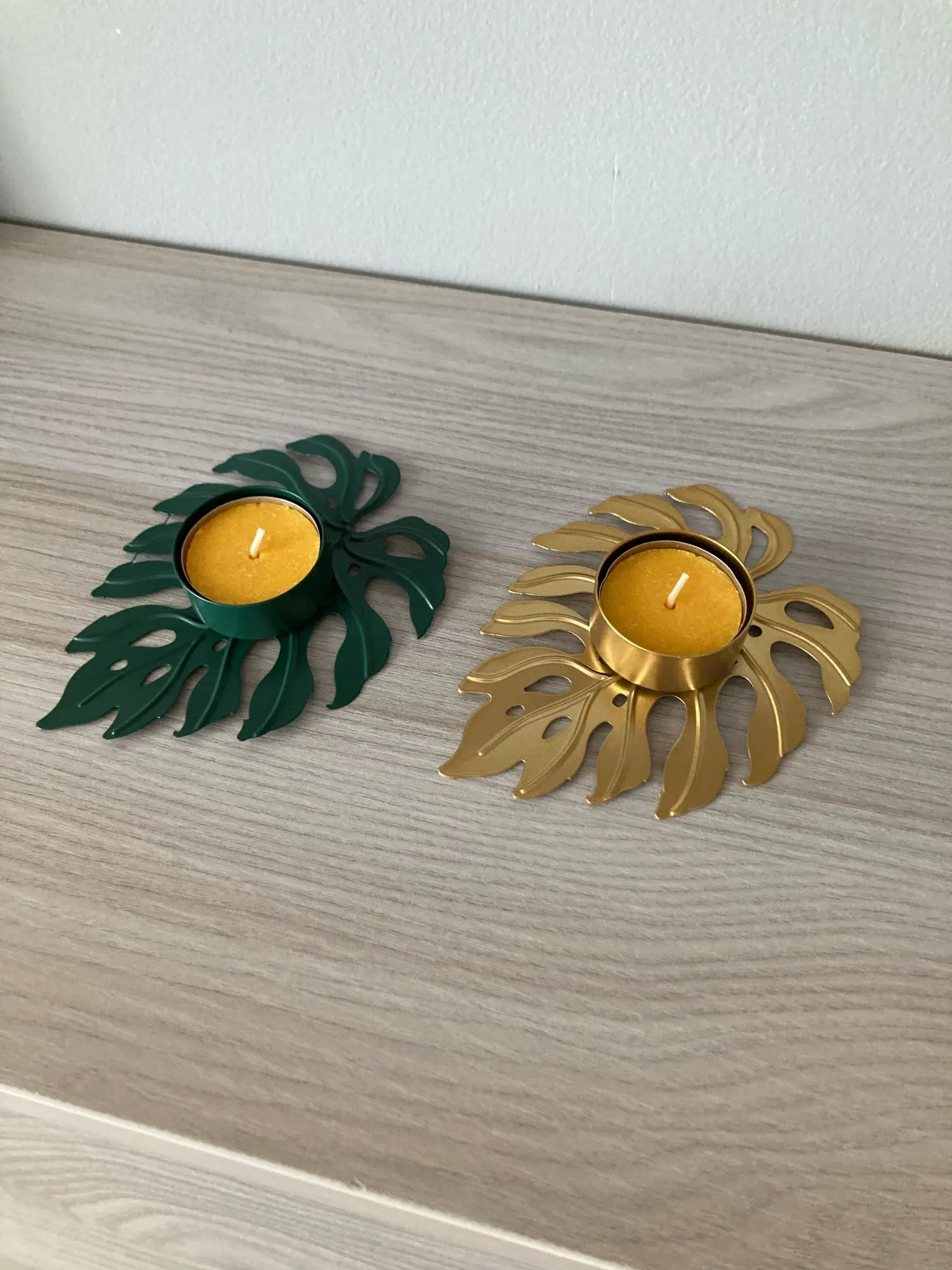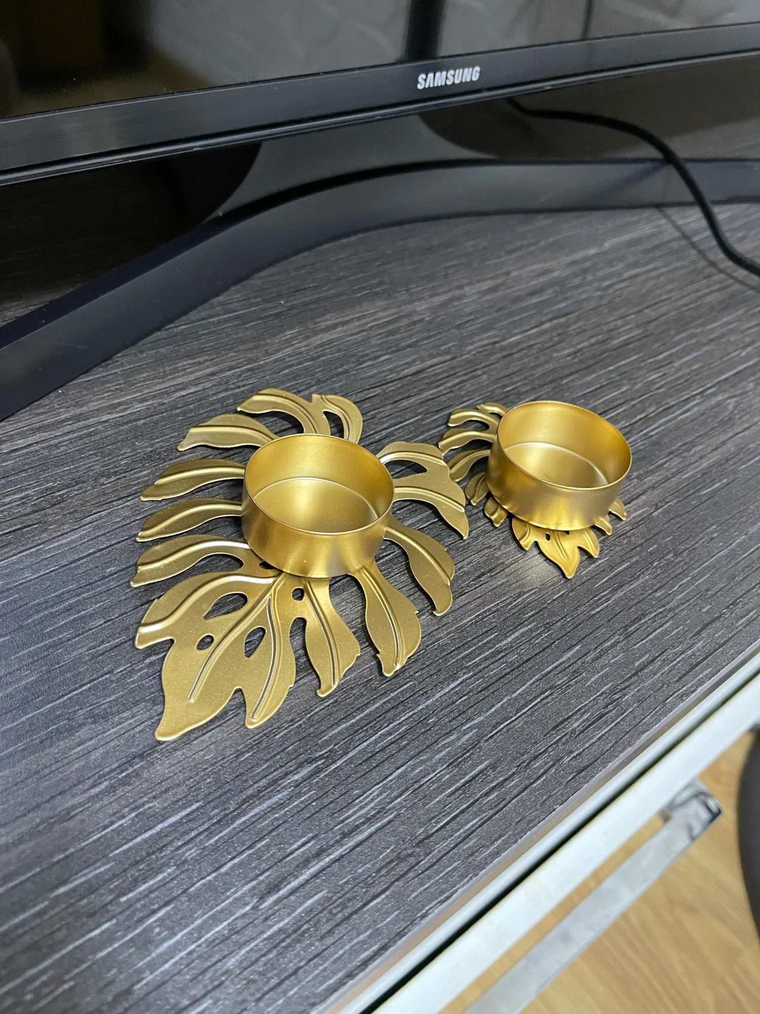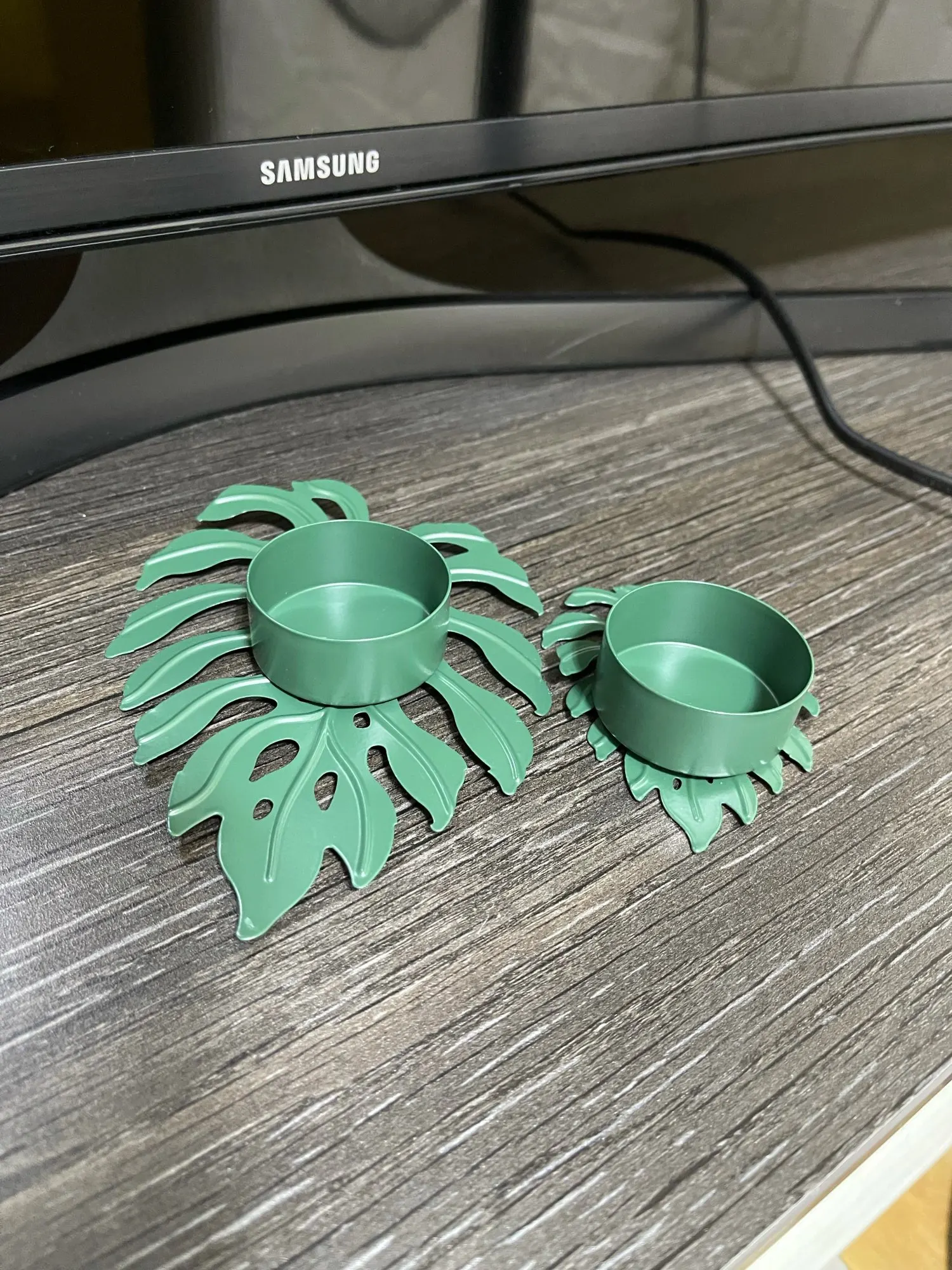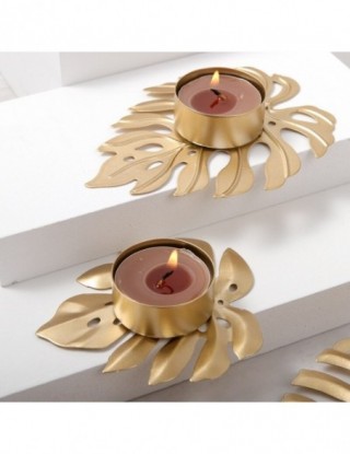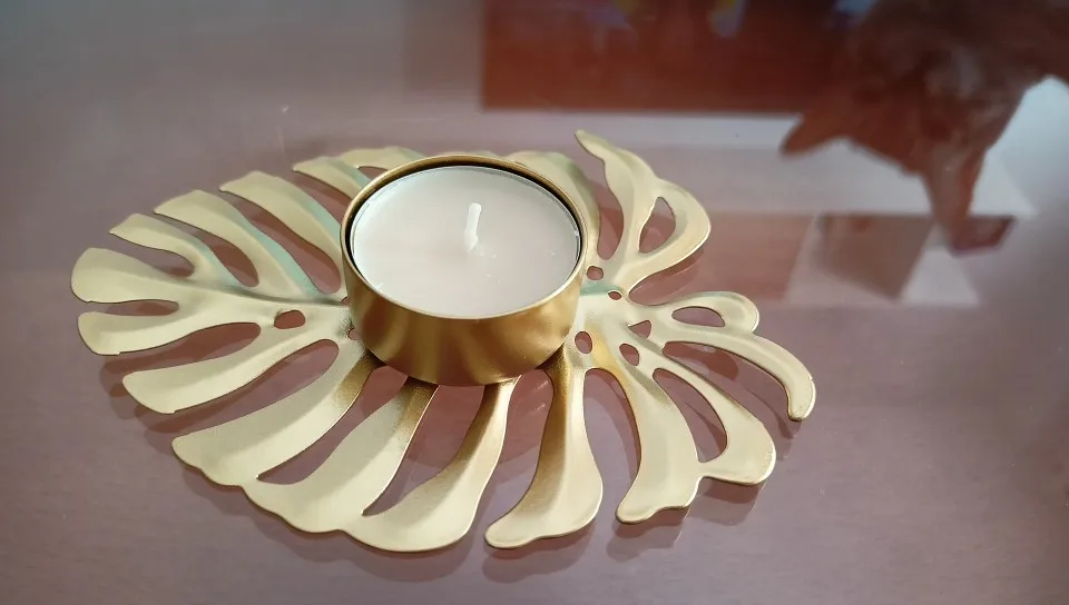 Świecznik kształt liścia metalowy świecznik ozdoba na biurko ozdoba Prop