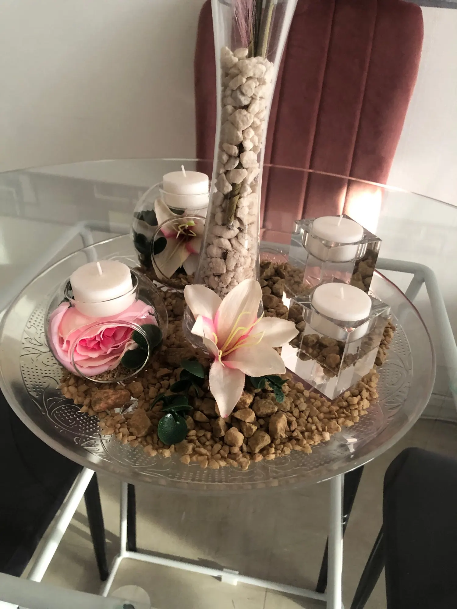 contente de mon achat. le verre est très fin et donc très fragile, attention ! emballage propre et correct. livraison un peu longue. on peut faire de jolie choses avec ces bougeoirs.