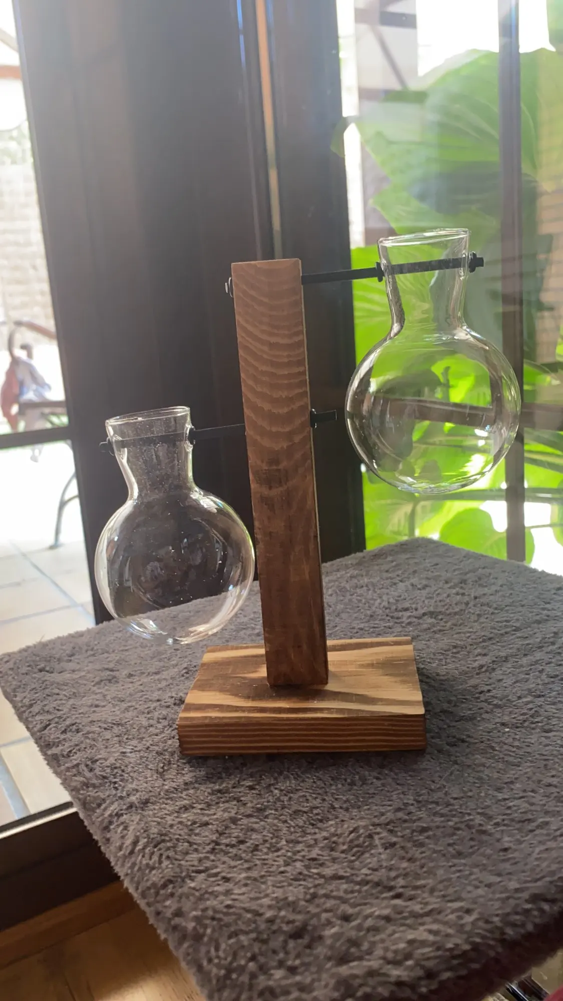 Terrarium roślina hydroponiczna wazony Vintage doniczka przezroczysty wazon drewniana rama szkło Tabletop rośliny domowe drzewko