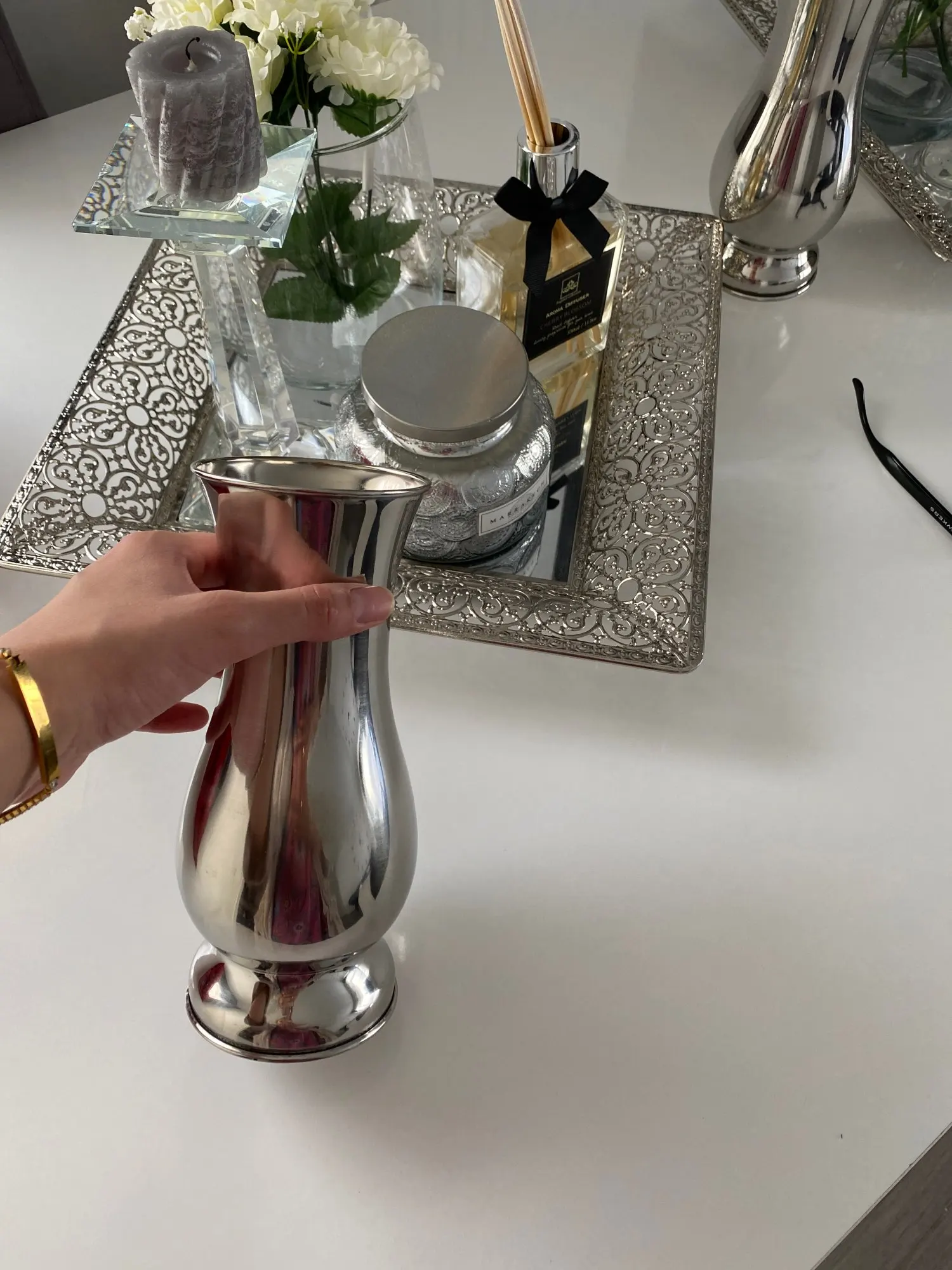 Modern Fashion Silver Gold poszycie wazony stołowe ozdoby ręcznie wykonane dekoracyjne wazon ze stali nierdzewnej metalowy kwiat