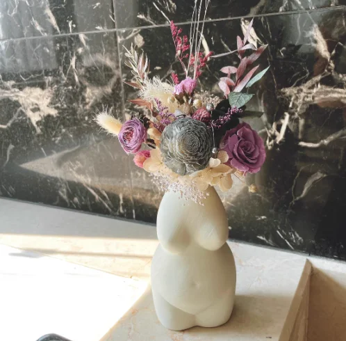 1. Doniczka na ciało ma wyjątkowy urok, wykonana z wysokiej jakości ceramiki, o gładkiej i jasnej powierzchni, trwała i piękna.