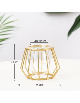 Żelazo Retro Art szklany wazon Terrarium roślina hydroponiczna wazon na kwiaty geometryczny zakład metalurgiczny uchwyt akcesori