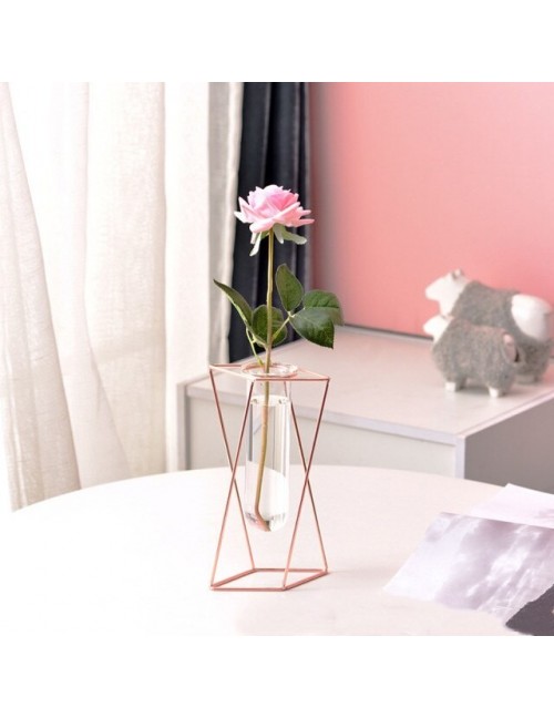 Nordic złoty szklany wazon żelazna roślina hydroponiczna wazon na kwiaty Tabletop kawiarnia biuro akcesoria do dekoracji wnętrz
