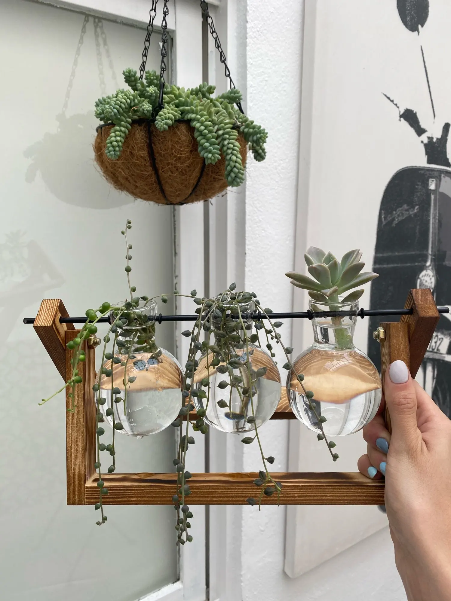 Terrarium kreatywny nawadniacz roślina przezroczysty wazon drewniana rama wazon decoratio szklany blat drzewko Bonsai kwiat ozdo
