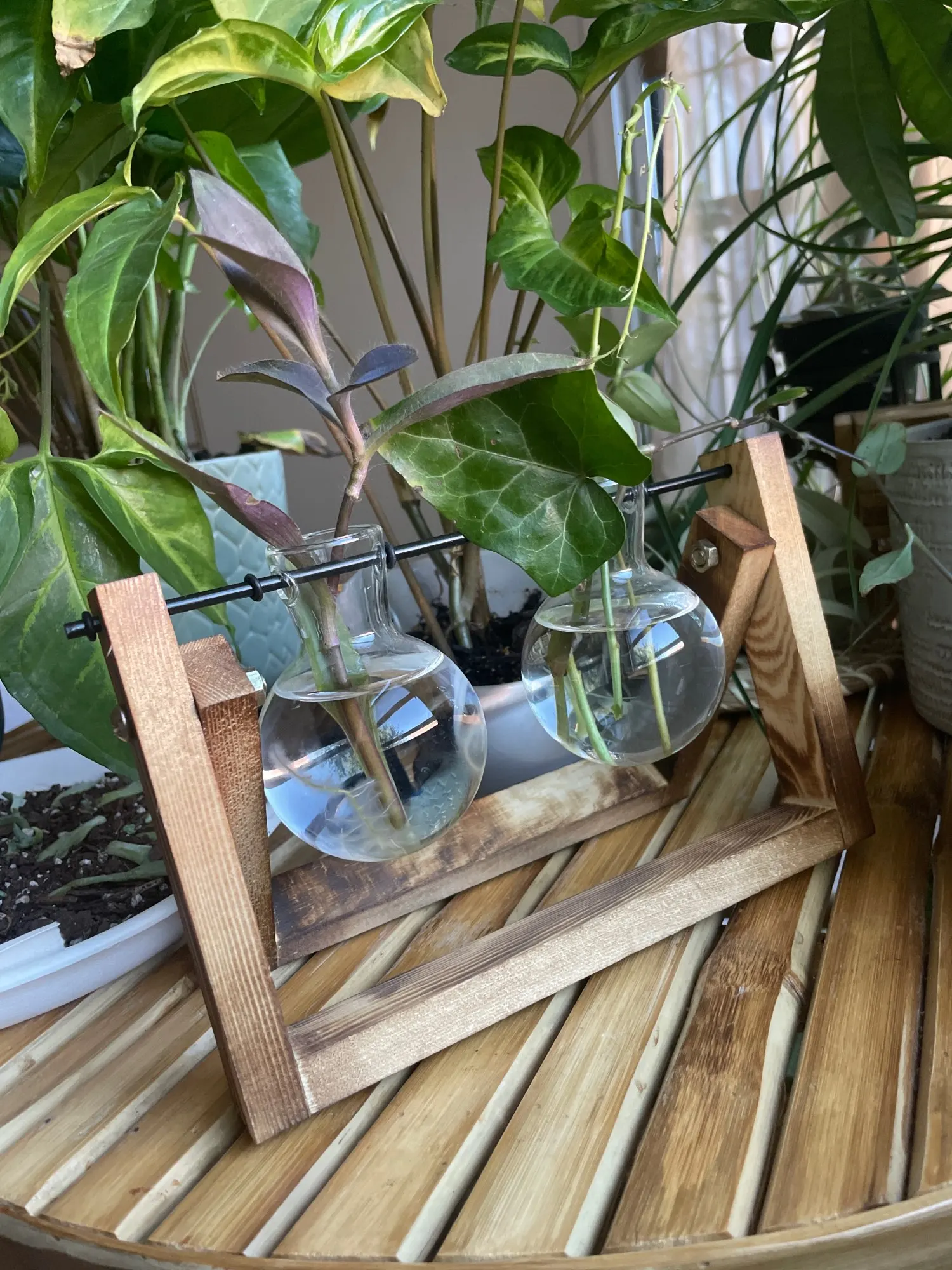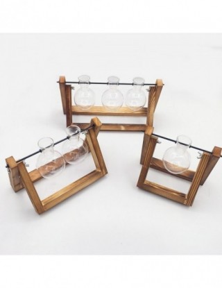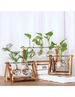 Terrarium kreatywny nawadniacz roślina przezroczysty wazon drewniana rama wazon decoratio szklany blat drzewko Bonsai kwiat ozdobny wazon