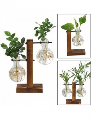 Terrarium roślina hydroponiczna wazony Vintage doniczka przezroczysty wazon drewniana rama szkło Tabletop rośliny domowe drzewko