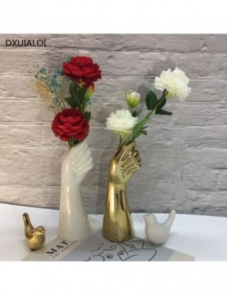 Ceramika wazon styl skandynawski złote igły do ręcznego kwiaty w wazonie nowoczesny wystrój domu i biura twórczej kompozycji kwiatowej ozdoba salonu
