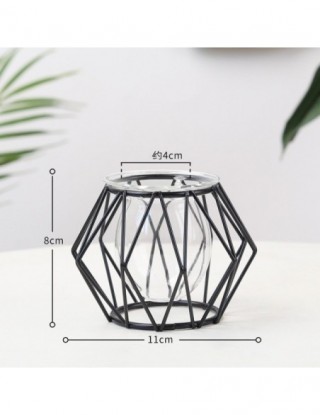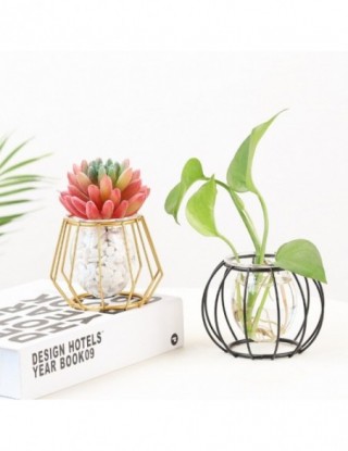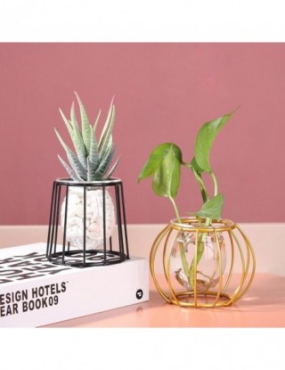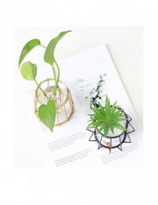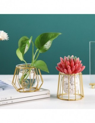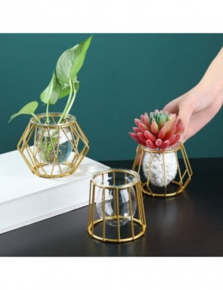 Nordic złoty szklany wazon Terrarium geometryczna linia żelaza wazon roślina hydroponiczna wazon na kwiaty zakład metalurgiczny