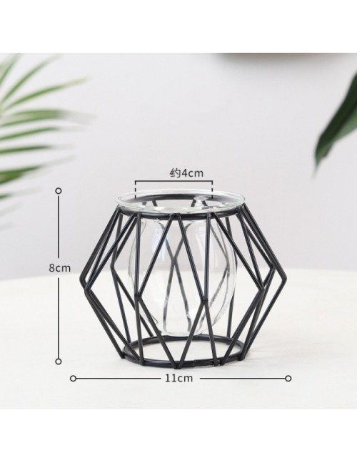 Nordic złoty szklany wazon Terrarium geometryczna linia żelaza wazon roślina hydroponiczna wazon na kwiaty zakład metalurgiczny uchwyt Home Decor Modern