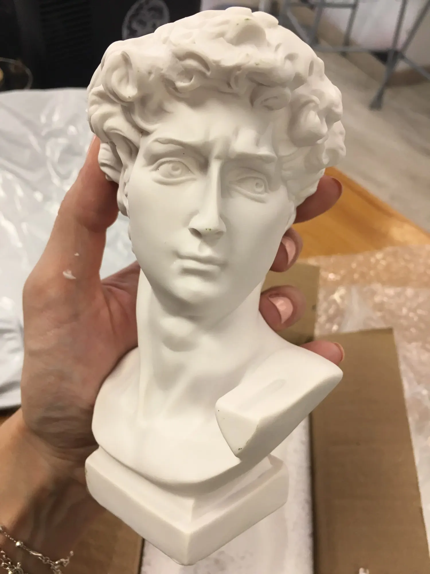 arrivata prima del previsto, molto ben imballata, perfetta come in foto. molto bella questa statua\portapennelli