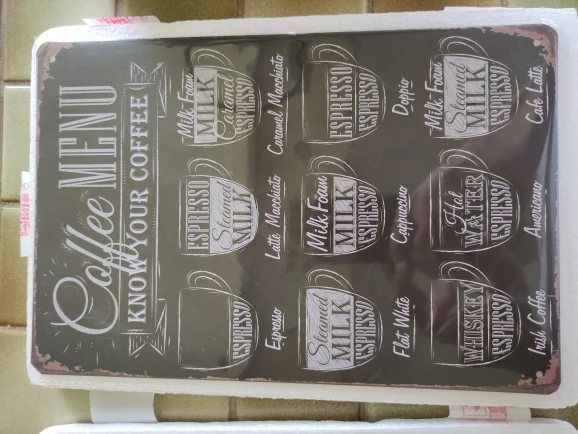 Vintage sfatygowany szykowny Menu kawy strona główna Bar Cafe metalowe plakietki emaliowane Pub tawerna Retro ozdobny talerz pla
