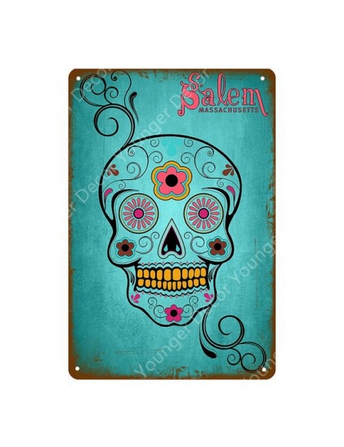 Cukrowa czaszka metalowe plakietki emaliowane meksykański festiwal dzień zmarłych tablica ścienna obraz plakat Party Shop Home Tattoo Parlors Decor