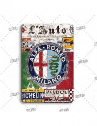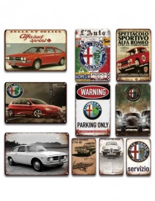 Vintage Alfa Romeo metalowy plakat garaż człowiek jaskinia antyczna dekoracja Retro metalowe plakietki emaliowane metalowe malow