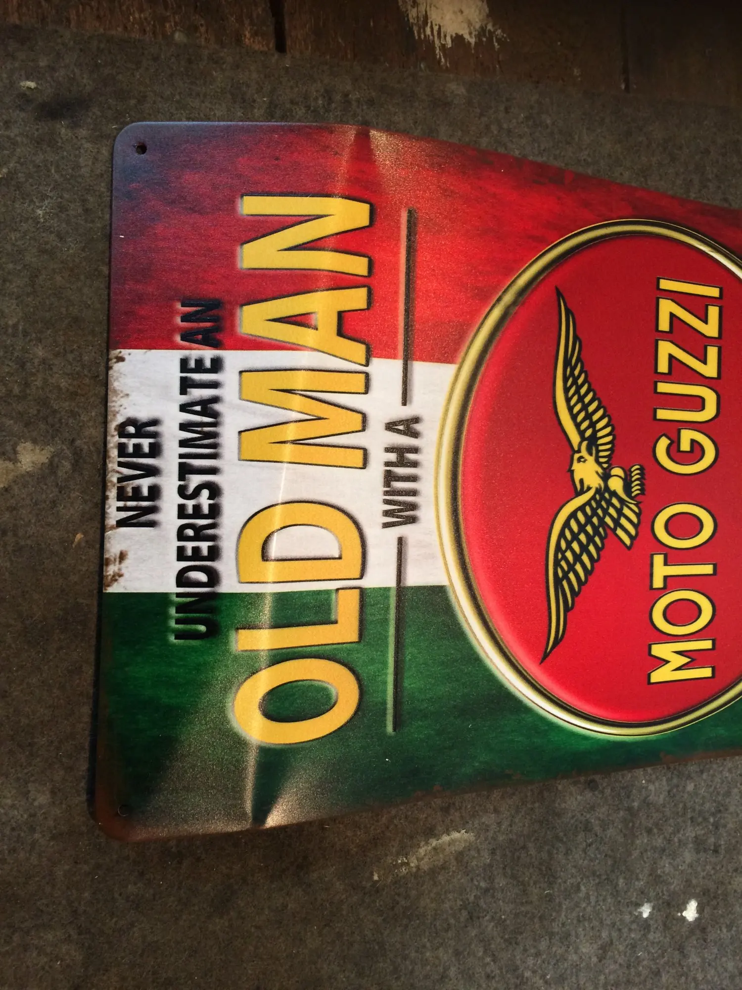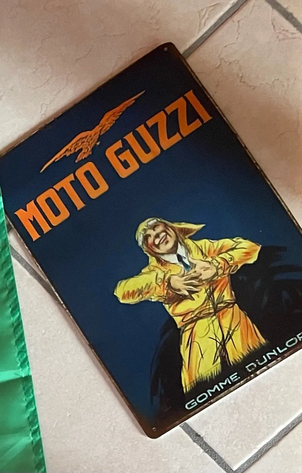Moto Guzzi tablica metalowa Vintage znak puszka motocykl sfatygowany szykowny wystrój metalowy znak Vintage dekoracje barowe met