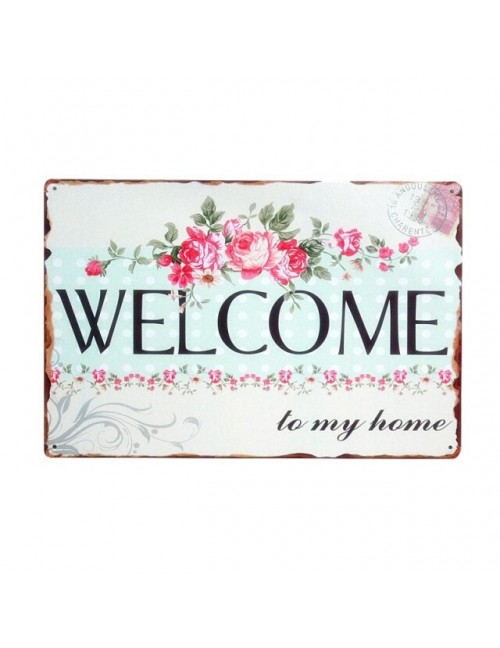 Piękny kwiat zapraszamy do mojego domu żelaza metalowy plakat znak blaszany płyta dekoracja ścienna Vintage Art malarstwo rodzin