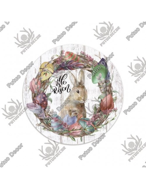 Putuo Decor wielkanoc okrągły drewniany znak królik tablica dekoracyjna drewno prezent dla domu rodzina wielkanoc temat wypełnione jajka polowanie Party dekor drzwiowy