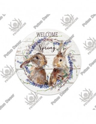 Putuo Decor wielkanoc okrągły drewniany znak królik tablica dekoracyjna drewno prezent dla domu rodzina wielkanoc temat wypełnione jajka polowanie Party dekor drzwiowy