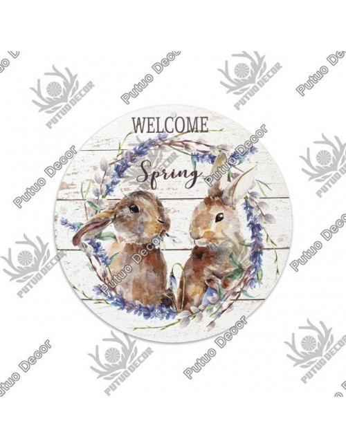 Putuo Decor wielkanoc okrągły drewniany znak królik tablica dekoracyjna drewno prezent dla domu rodzina wielkanoc temat wypełnio