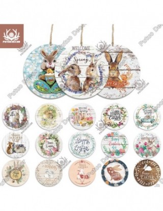 Putuo Decor wielkanoc okrągły drewniany znak królik tablica dekoracyjna drewno prezent dla domu rodzina wielkanoc temat wypełnio