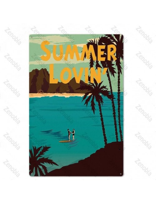 Metalowy znak wystrój plażowy rdza znak blaszany naklejki ścienne hawajski romans plakaty do baru Pub i pokoju klubowego dekoracja ścienna
