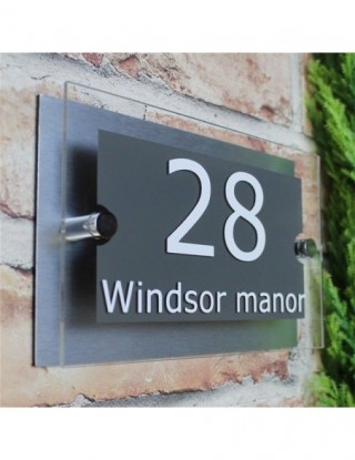 2> tablica wykonana jest z odpornego na warunki atmosferyczne 5mm Arcylic i mierzy 250mm x 150mm i jest wstępnie nawiercona, wspornik ze stali nierdzewnej w zestawie.