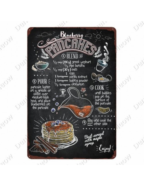 Frytki znak blaszany kluska plakat w stylu Vintage Bar Home Cafe dekoracja kuchenna pączek jabłko Pie naklejka ścienna jajko boczek naleśniki tablica