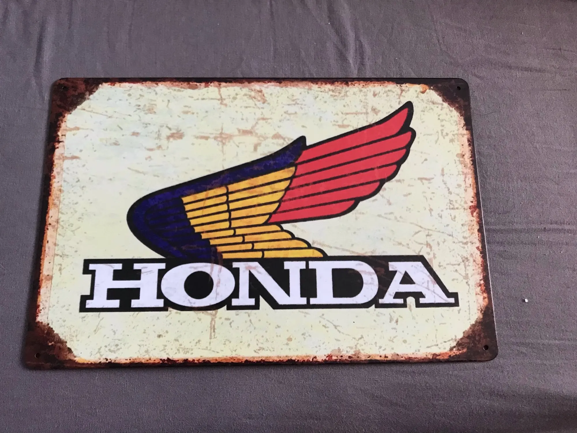 Akcesoria do motocykli Honda Retro metalowy znak znak blaszany tablica metalowa dekoracja ścienna wystrój w stylu Vintage plakat płyty człowiek jaskinia sfatygowany szykowny