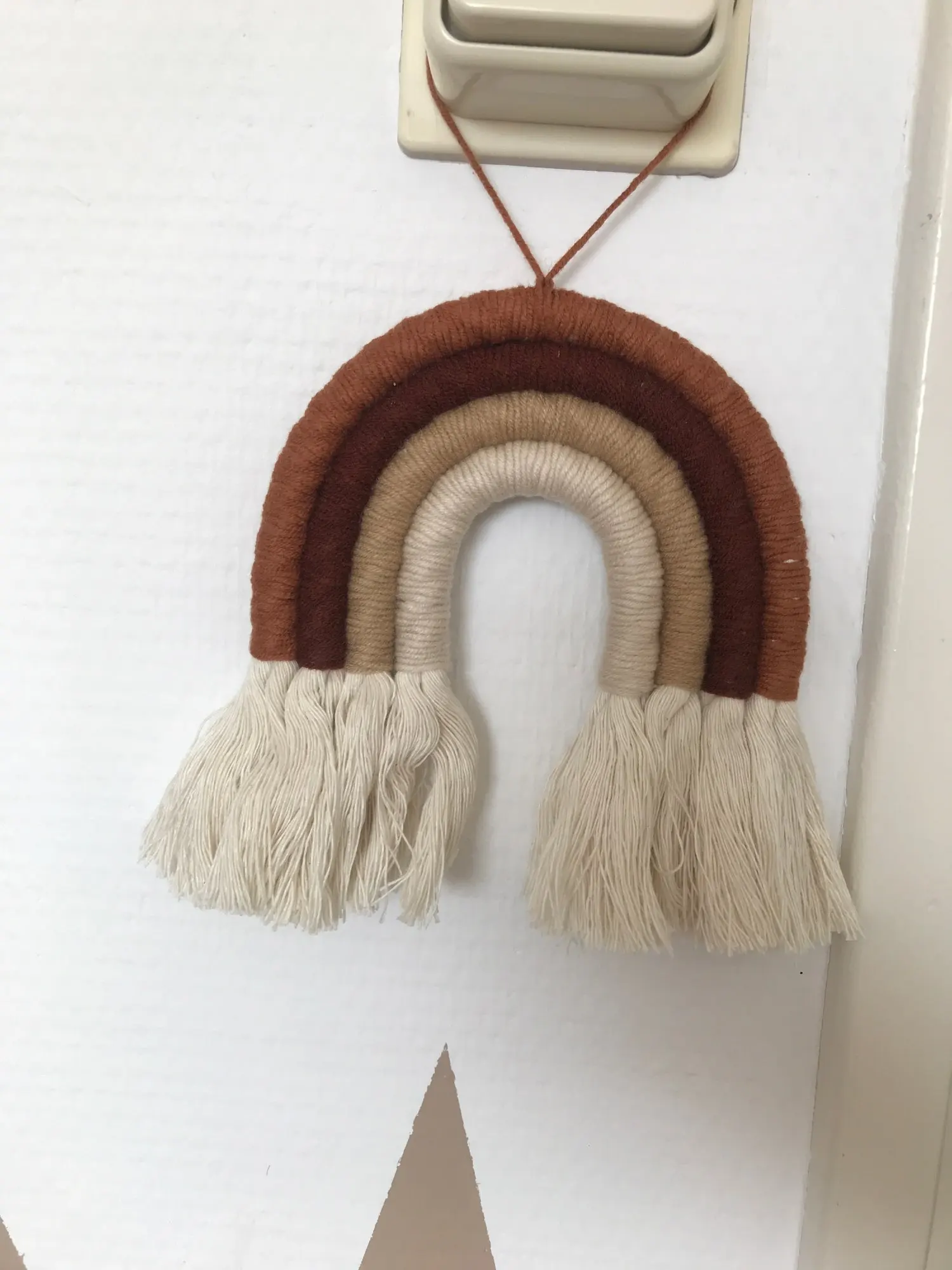 Materiał: ręcznie robione piękne ozdoby wykonane z przędzy i bawełnianej liny. Dodaj charakter i urok do każdej ściany w twoim domu dzięki temu tkanemu wiszącemu tęczowi.