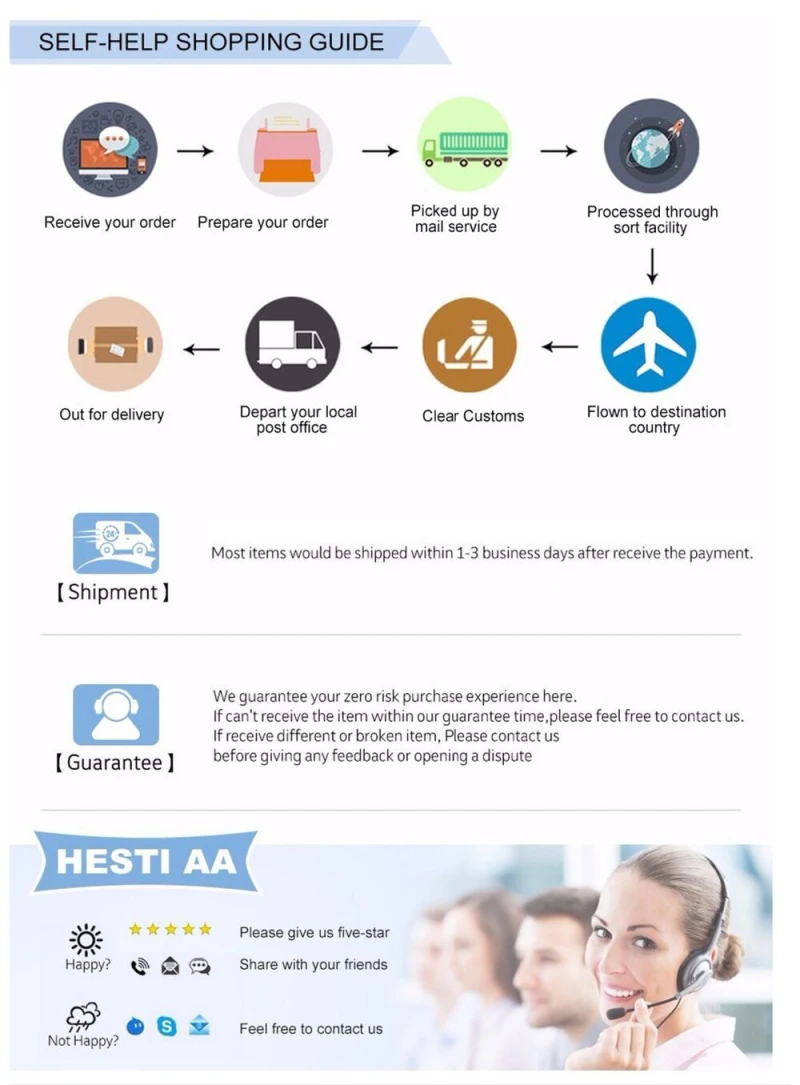 1. Jeśli masz jakiekolwiek problemy z jakością podczas transportu międzynarodowego, proszę najpierw poinformować obsługę klienta, będziemy ponownie dostarczać dla ciebie, dziękuję