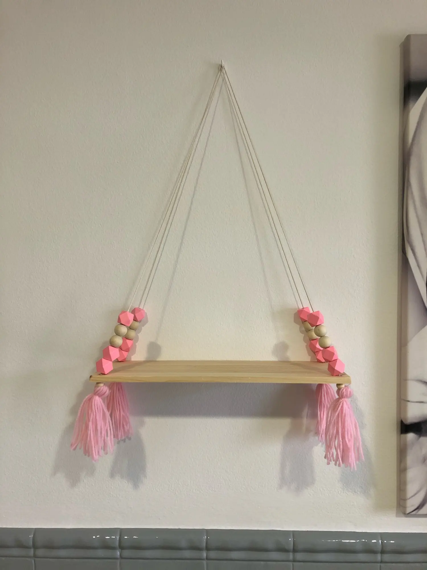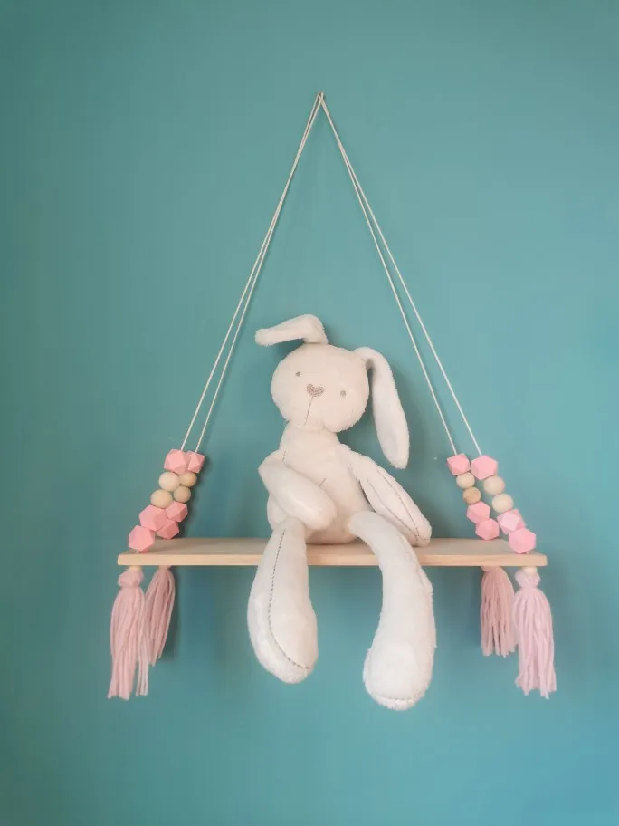 Styl skandynawski kolorowe koraliki tassel drewniana ściana półka ścienna clapboard dekoracja pokój dziecięcy odzież dziecięca w