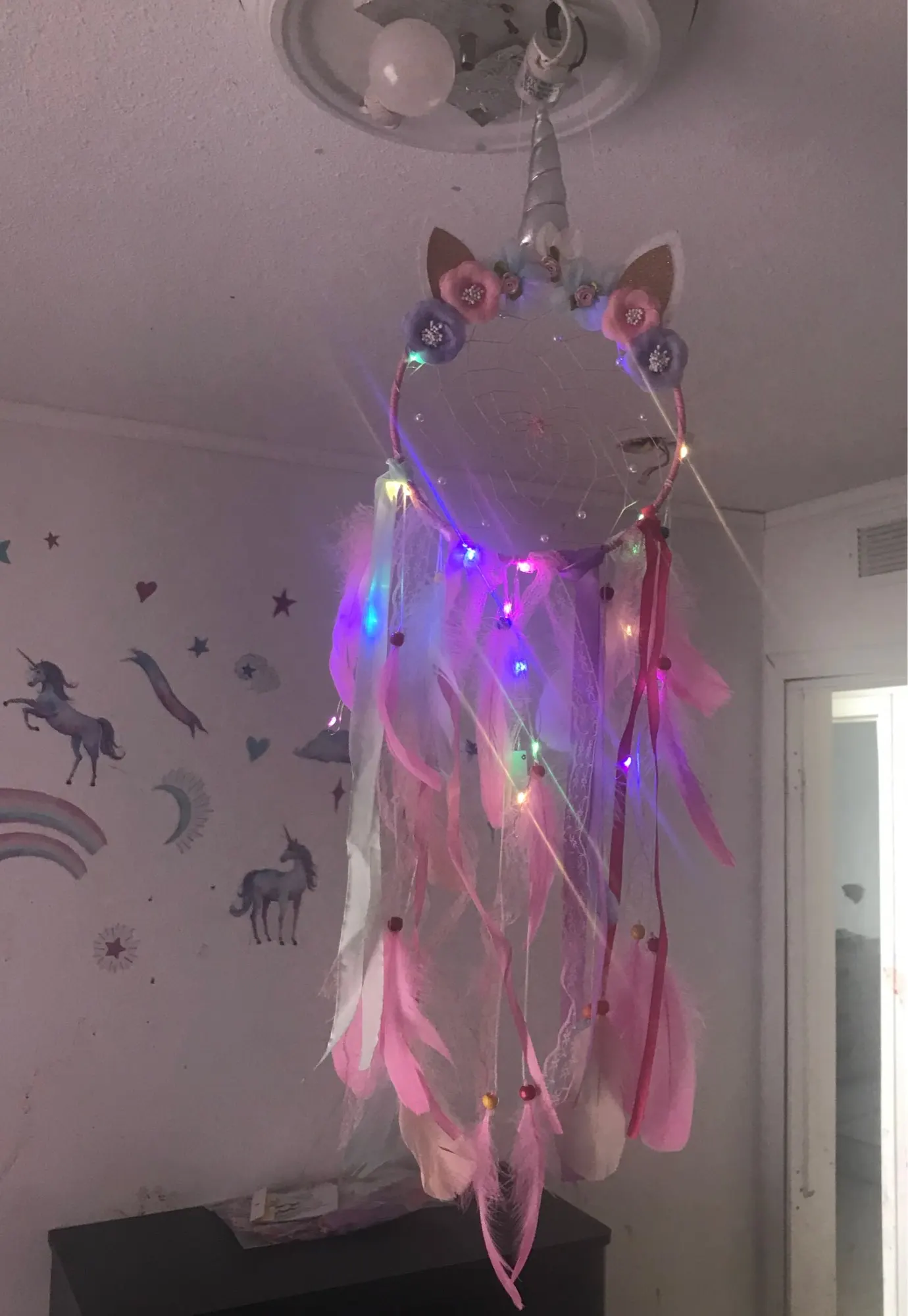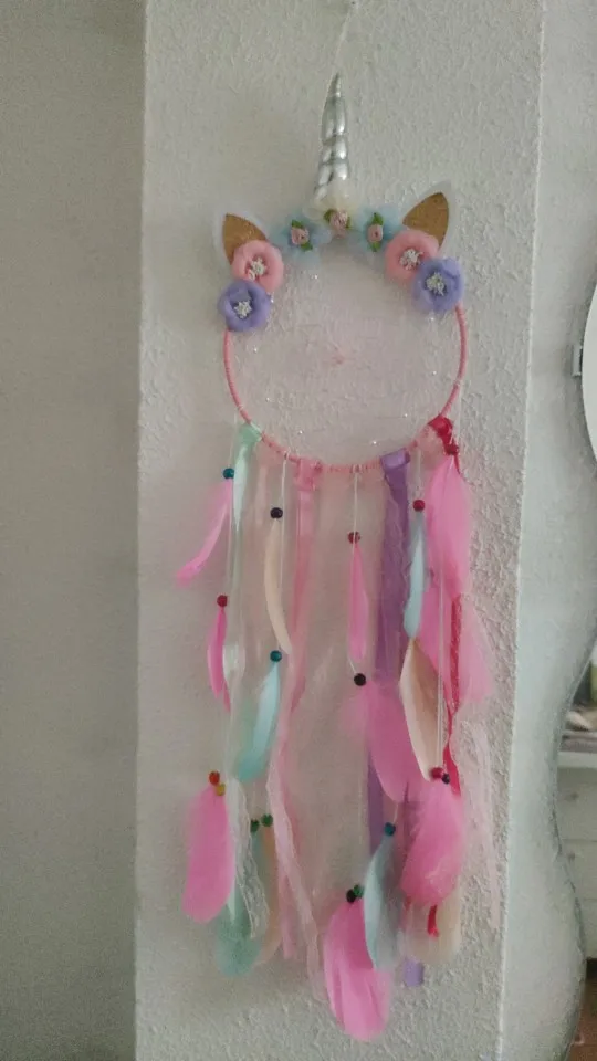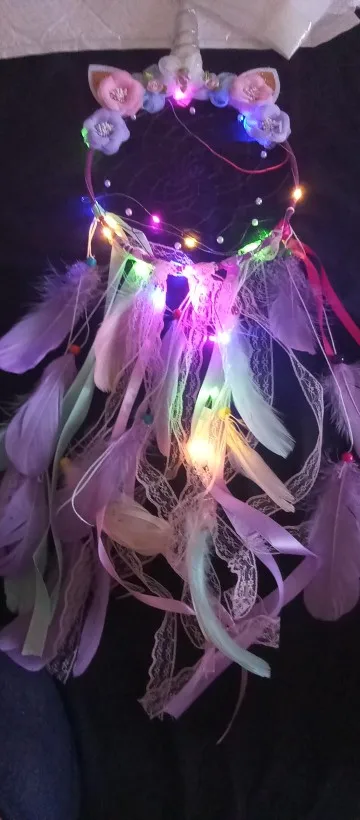 Jednorożec łapacz snów z piór łapacze snów pióro ręcznie Led Light Wall wiszące frędzle Dreamcatcher Home Decoration