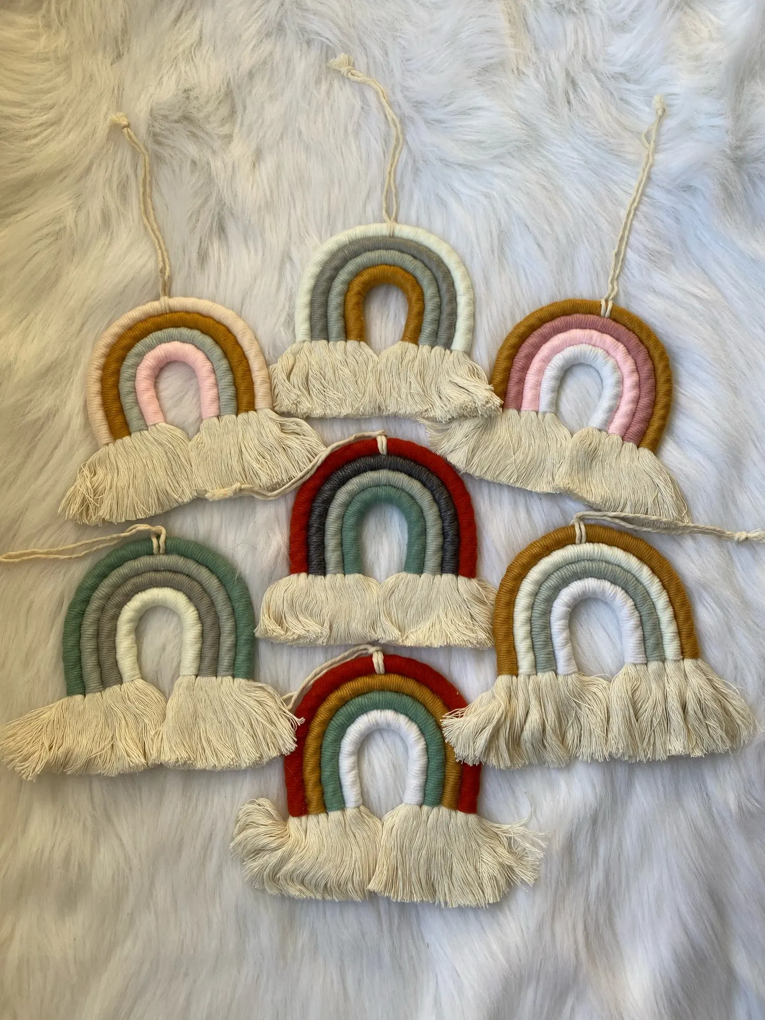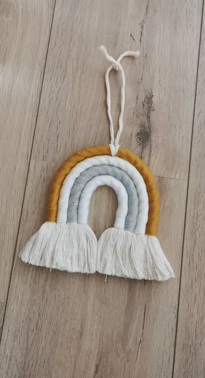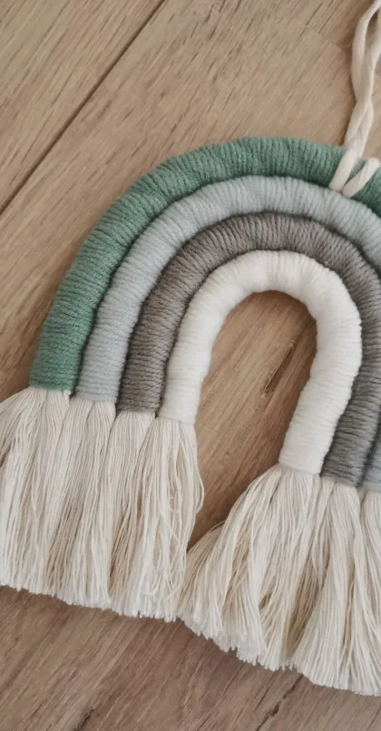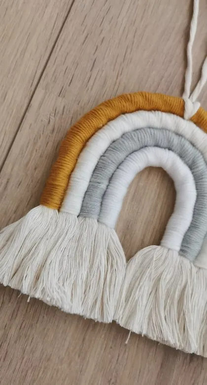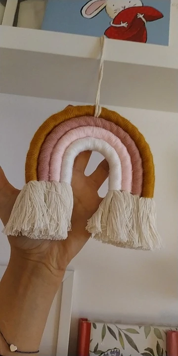 Materiał: ręcznie robione piękne ozdoby wykonane z przędzy i bawełnianej liny. Dodaj charakter i urok do każdej ściany w twoim domu dzięki temu tkanemu wiszącemu tęczowi.