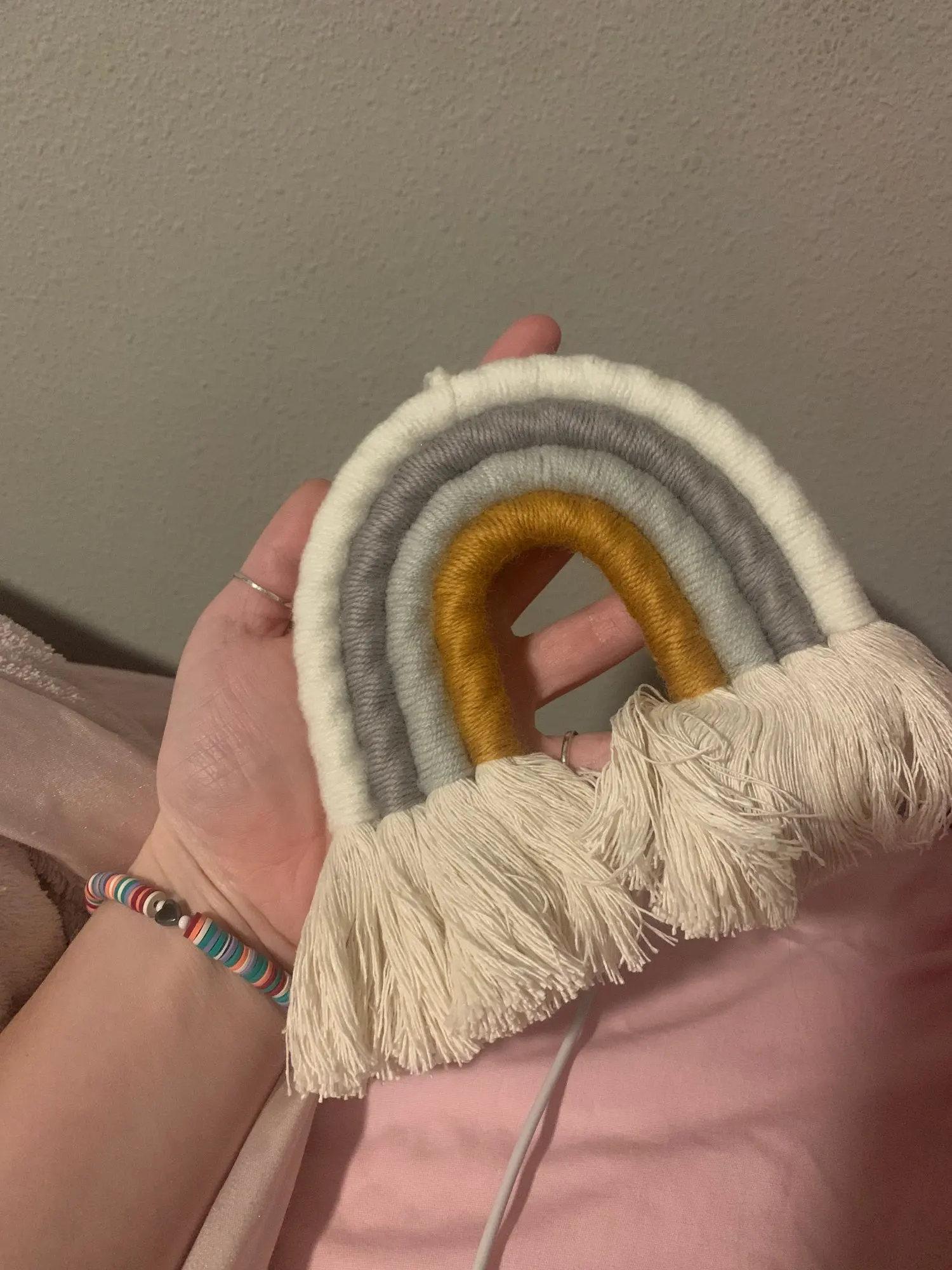 Proces: za pomocą wielu kolorowa bawełniana lina, ręcznie w tęczy ściany wiszące. Trochę tęczy, aby rozjaśnić swój pokój, A następnie rozjaśnić swój dzień.