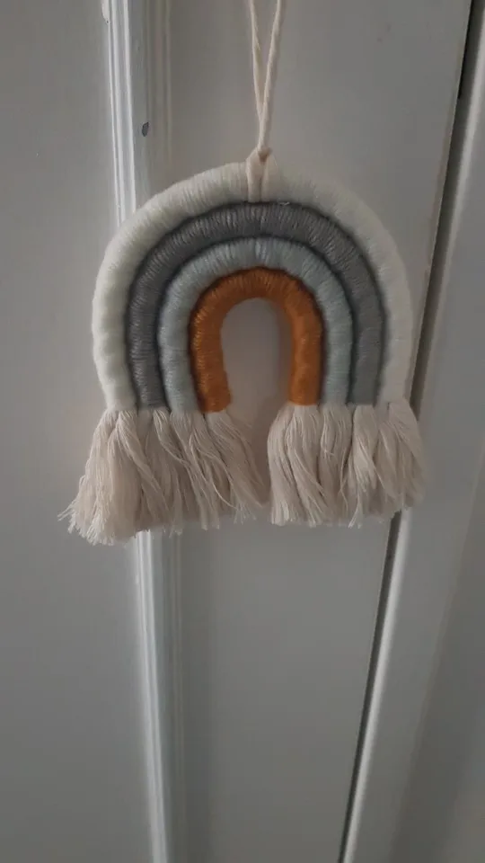 Ręcznie tęczy. Zawiera 4 linie o żywych kolorach, eleganckie i uniwersalne, ta tęczowa zawieszka ścienna jest dobrym wyborem do dekoracji sezonowych i świątecznych, pokoju dziecięcego lub pokoju dziecinnego.