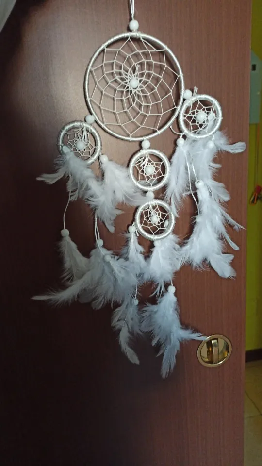 Nowo duży Dreamcatcher dzwonek wietrzny biały łapacz snów z piórami ozdoba wisząca do samochodu 5 okrągły wystrój domu prezent wystrój pokoju