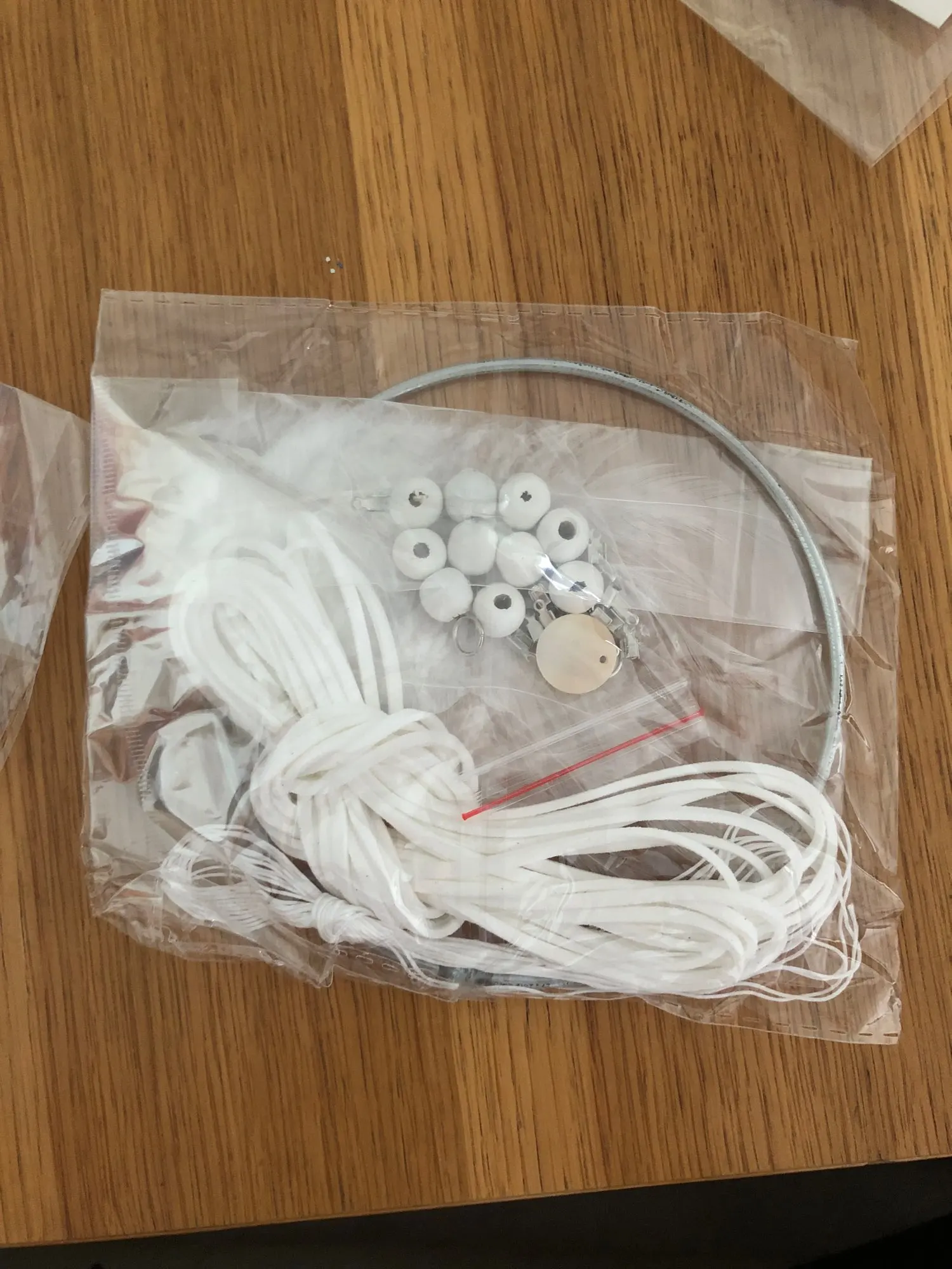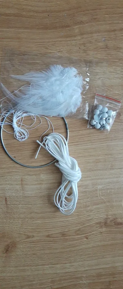 * Materiał: żelazny pierścień + lina + pióro + drewniane koraliki