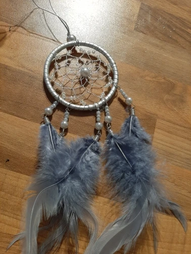 Materiał: żelazne obręcze, koraliki, pióra